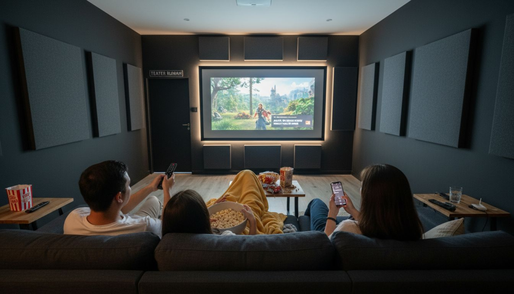 Proyektor short-throw direkomendasikan kerana menghasilkan imej besar dari jarak pendek. Teknologi ini mengurangkan masalah bayang-bayang dan menjimatkan ruang berharga. Rujuk panduan projektor home theater terbaik 2025 untuk pilihan spesifik sesuai saiz ruang anda.