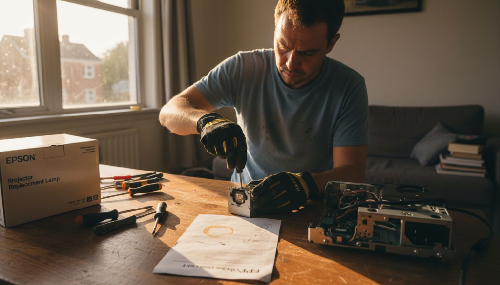 Proper lamp replacement protects both your equipment and your safety. Follow this systematic approach to replace Epson projector lamp without damaging components.